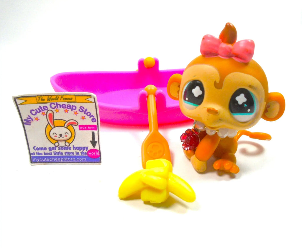 Littlest Pet Shop Rare Baby Monkey Pink Bow #811 with cute accessories