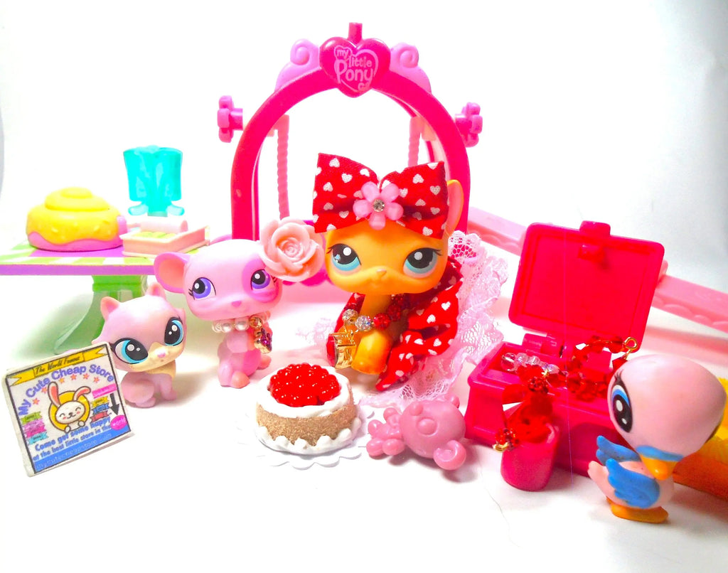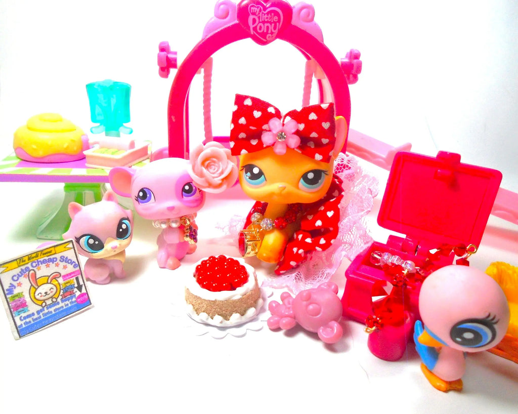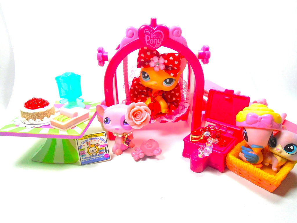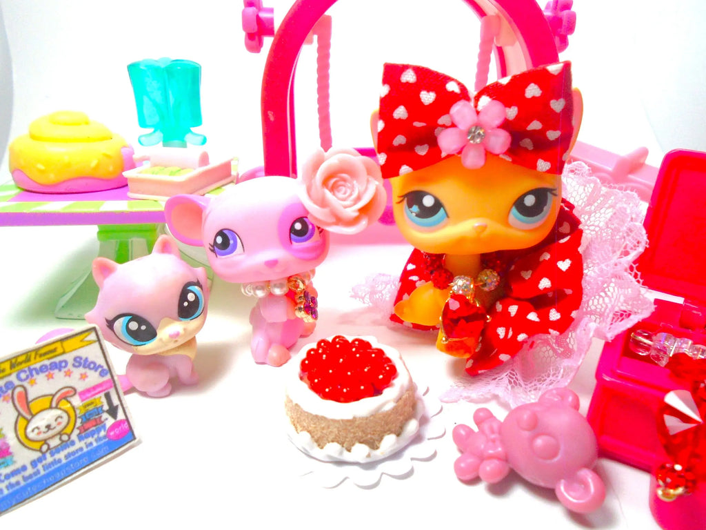 Littlest Pet Shop Short Hair Cat Brooke #339 Mouse #1545 with minis & cute accessories