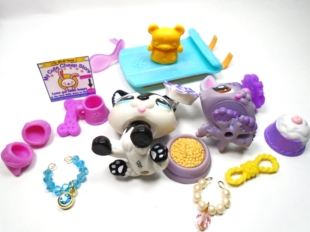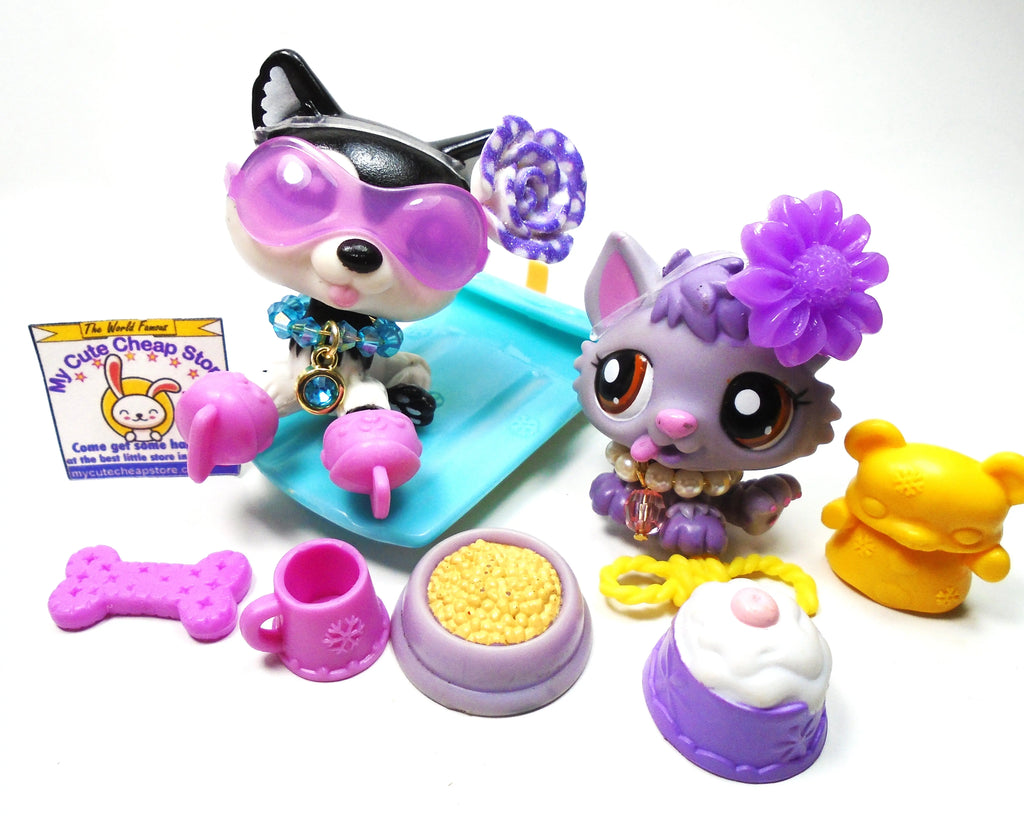 Littlest Pet Shop Husky dog #2246 and baby #1752 with accessories