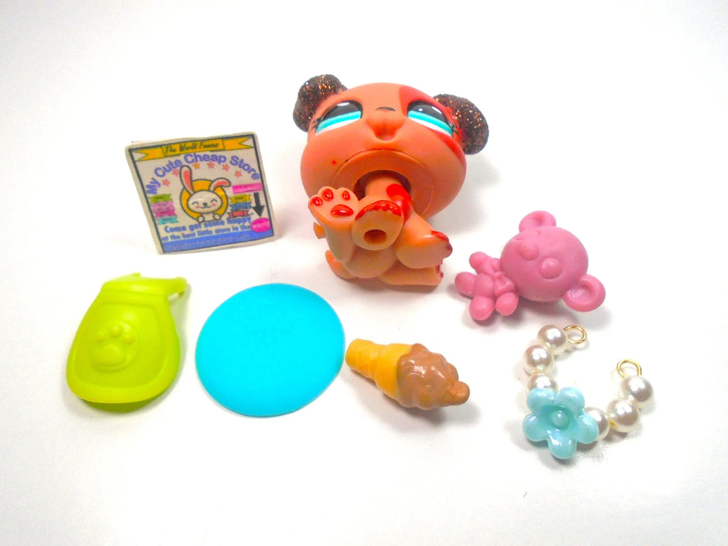 Littlest Pet Shop Rare Brown Glitter Boxer Puppy #2235 with cute accessories Authentic