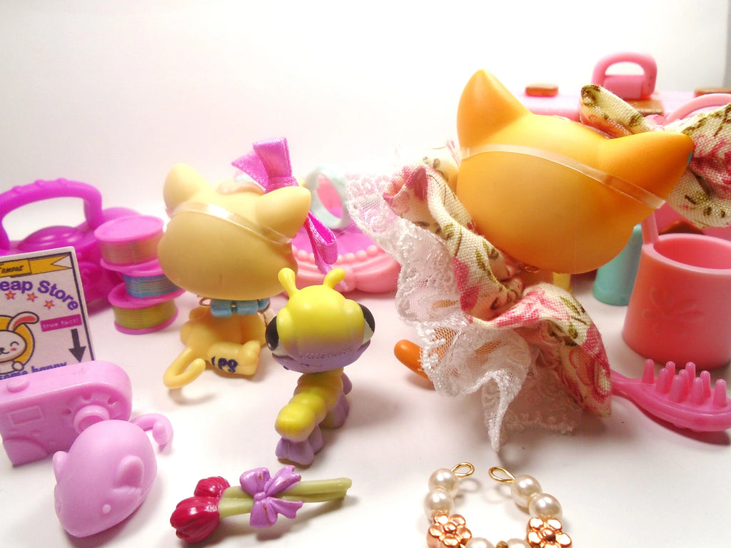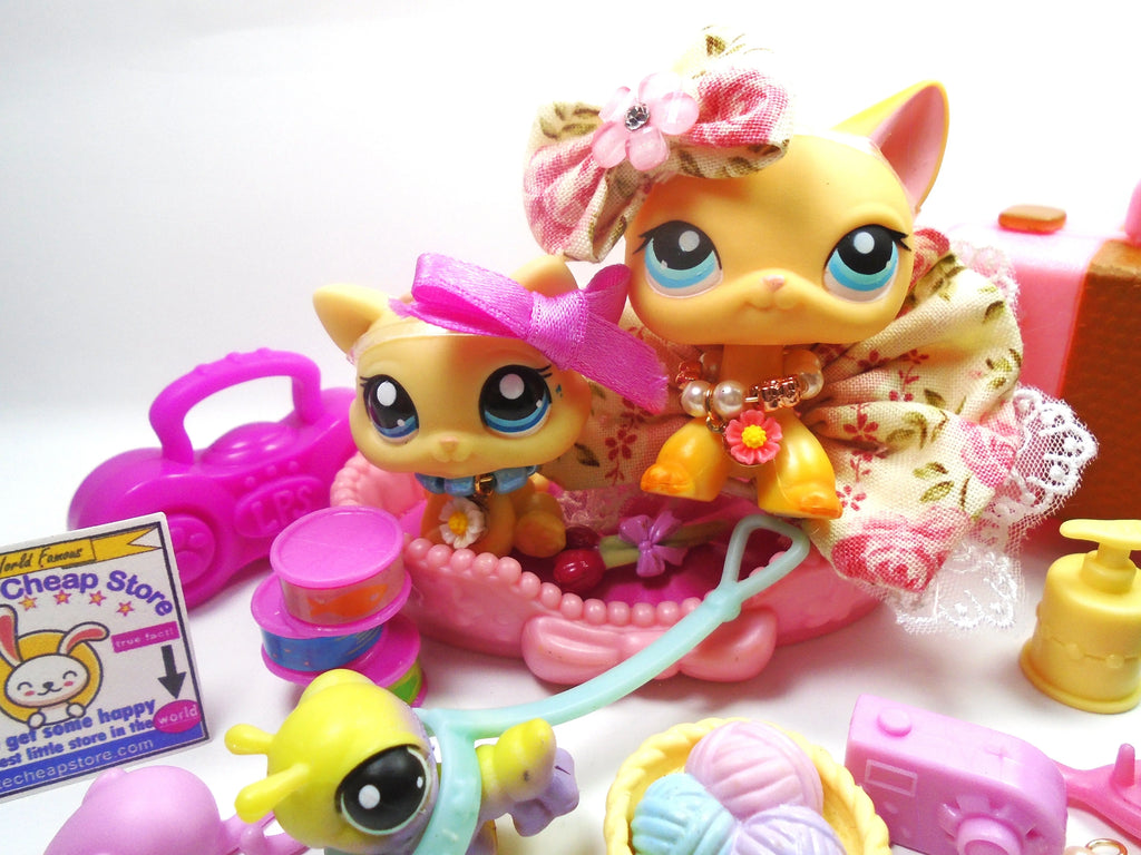 Littlest Pet Shop short hair cat #339 "Brooke " with Unique and Cute accessories and a Cricket and Kitten