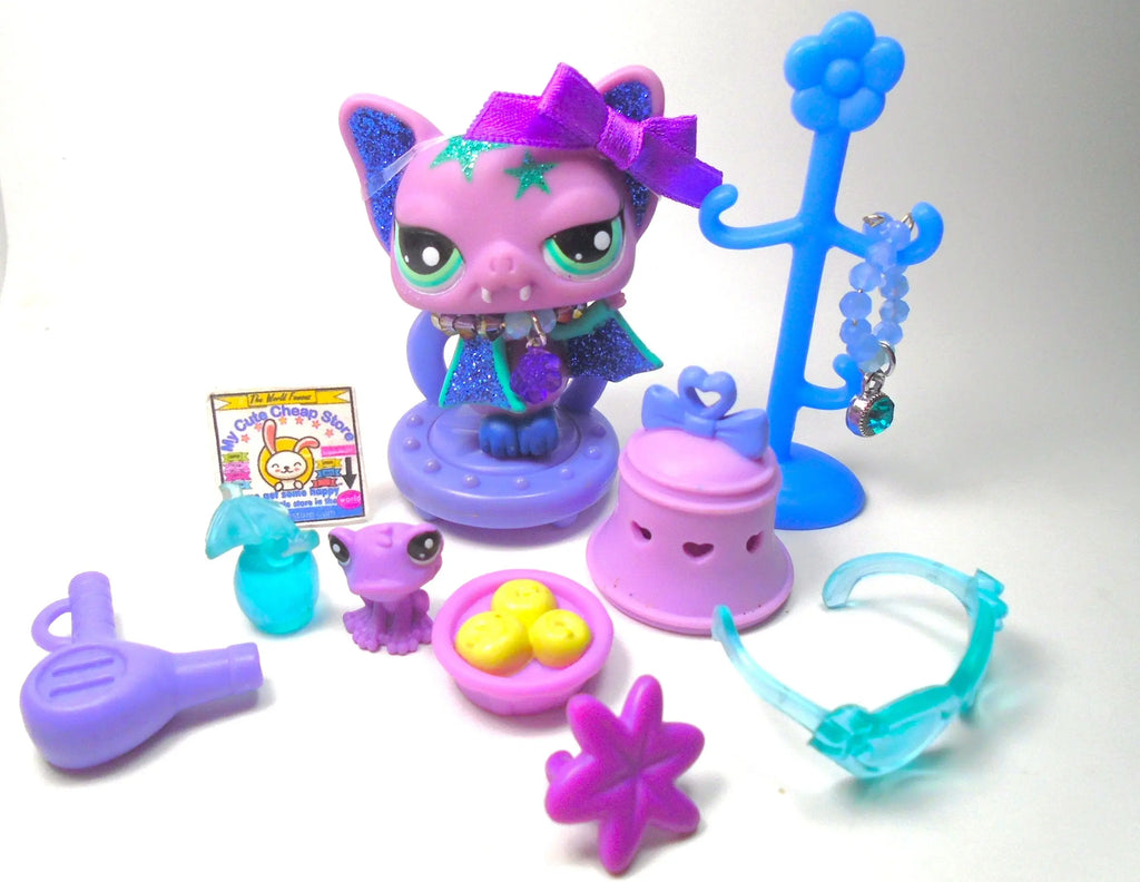 Littlest Pet Shop Rare Glitter Bat #2142 with accessories authentic