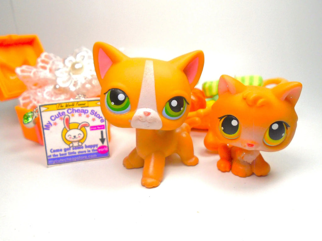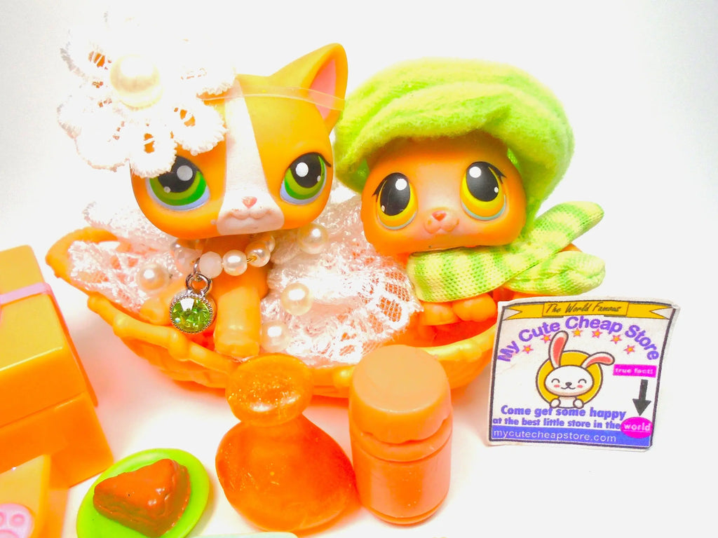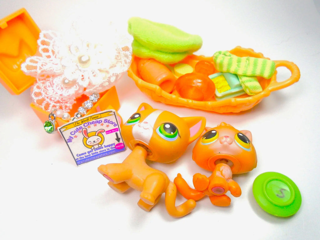 Littlest Pet Shop Short Hair Cat #72 Kitten #86 with cute accessories