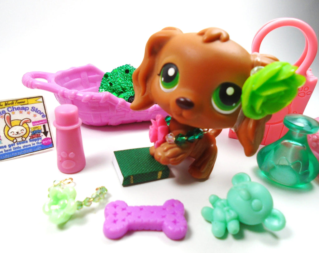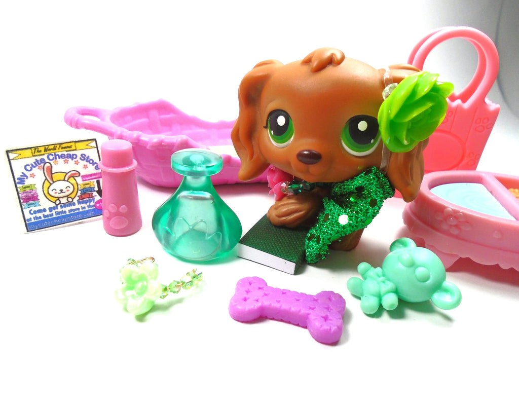 Littlest Pet Shop Cocker Spaniel #252 with cute accessories