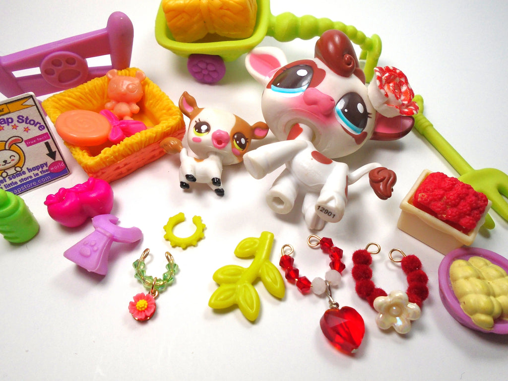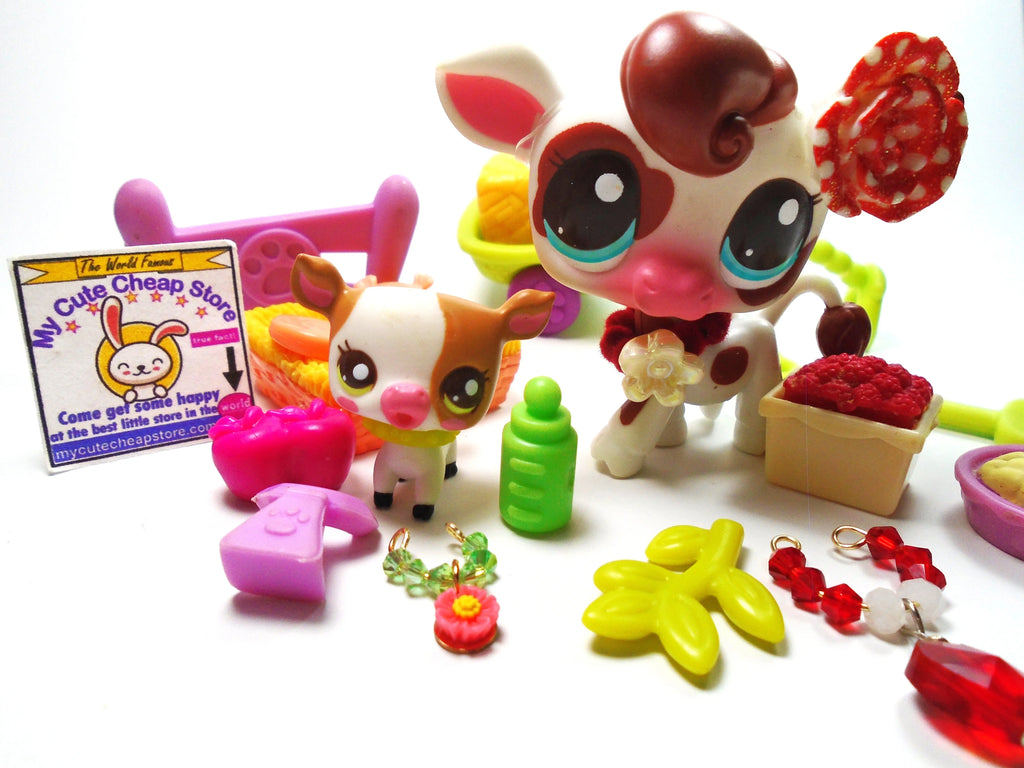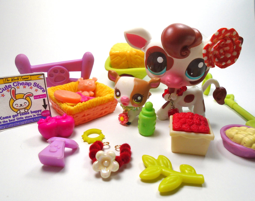 Littlest Pet Shop Mommy and baby cow #2505 #2606 with accessories