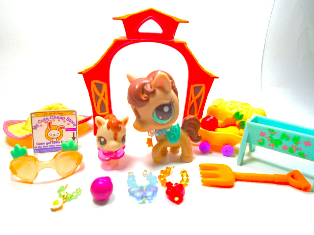 Littlest Pet Shop Rare Mommy Baby Horse #2666 #2667 with cute accessories