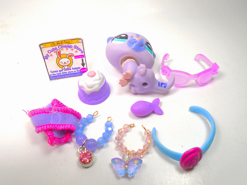 Littlest Pet Shop Rare Pink Purple Sea Otter #2509 & cute accessories authentic