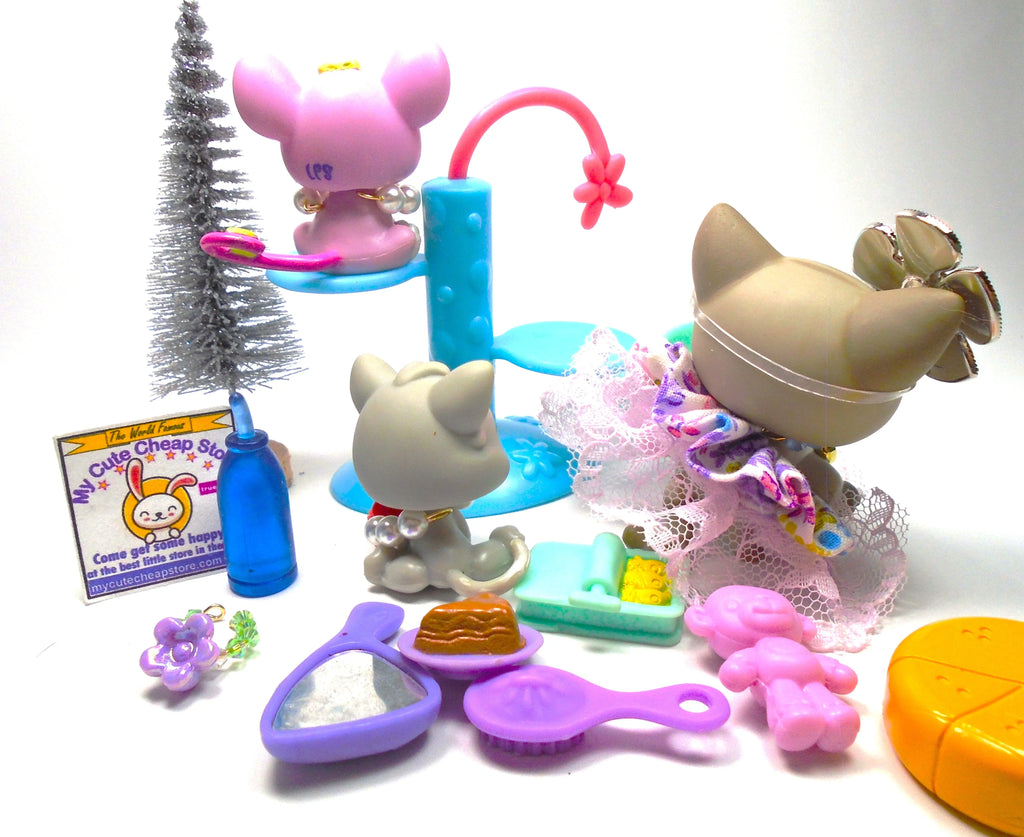 Littlest Pet Shop Short Hair Cat #483 mouse #2206 kitten #198 with cute accessories