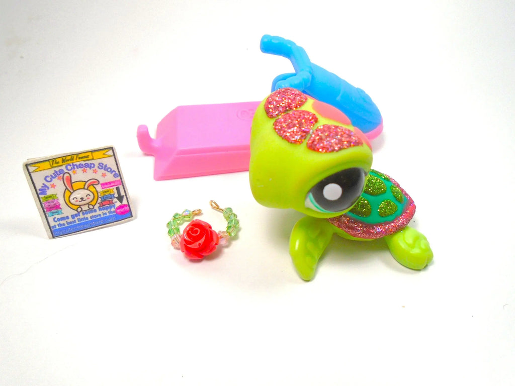 Littlest Pet Shop Rare Glitter Turtle #2149 with cute accessories Authentic