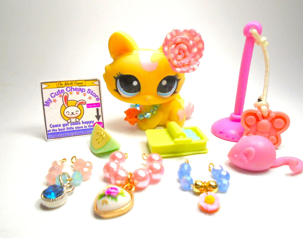 Littlest Pet Shop Rare Crouching Cat #1090 with cute accessories