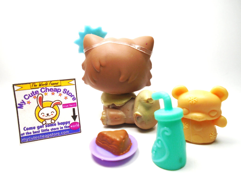 Littlest Pet Shop Brown Persian cat #371 with accessories