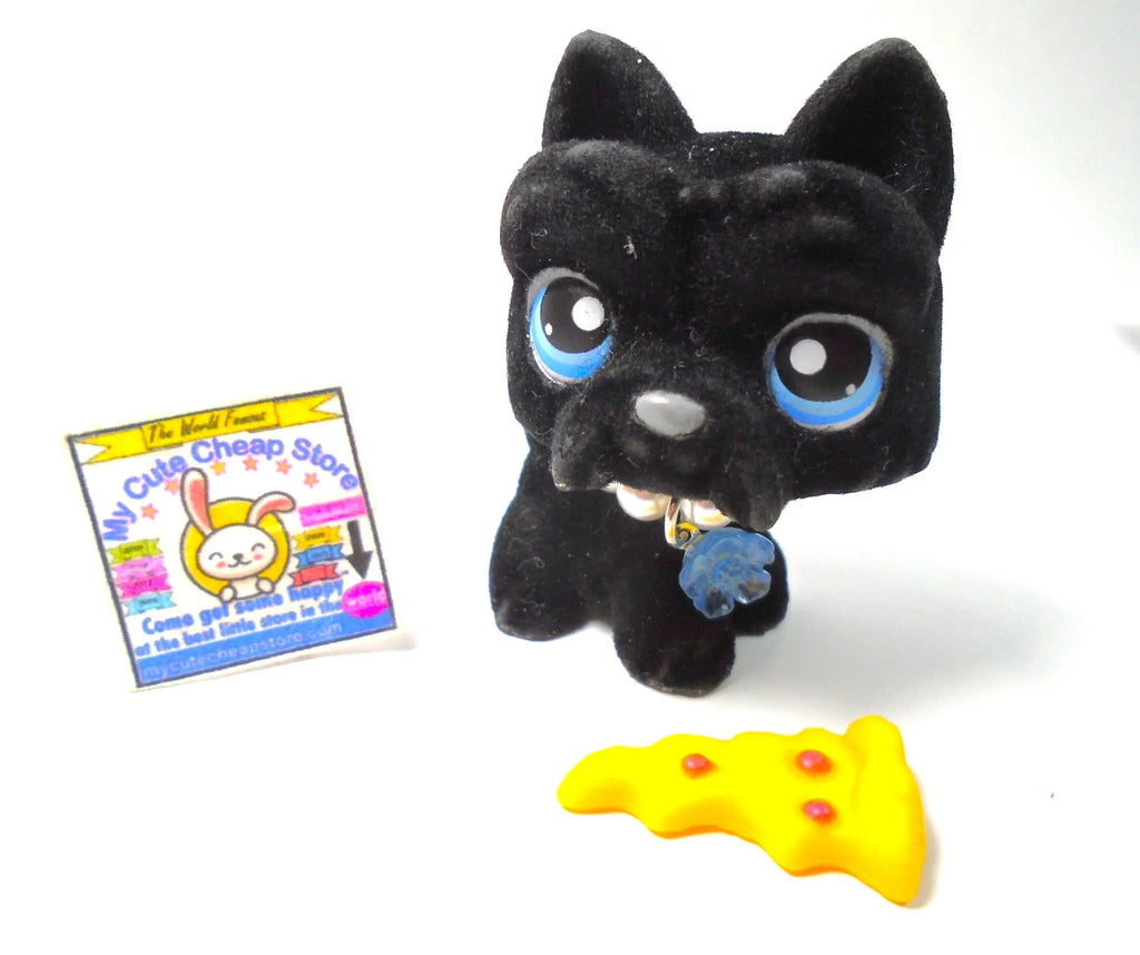 Littlest pet shop Black Fuzzy Flocked Scottie Dog #315 with cute accessories authentic