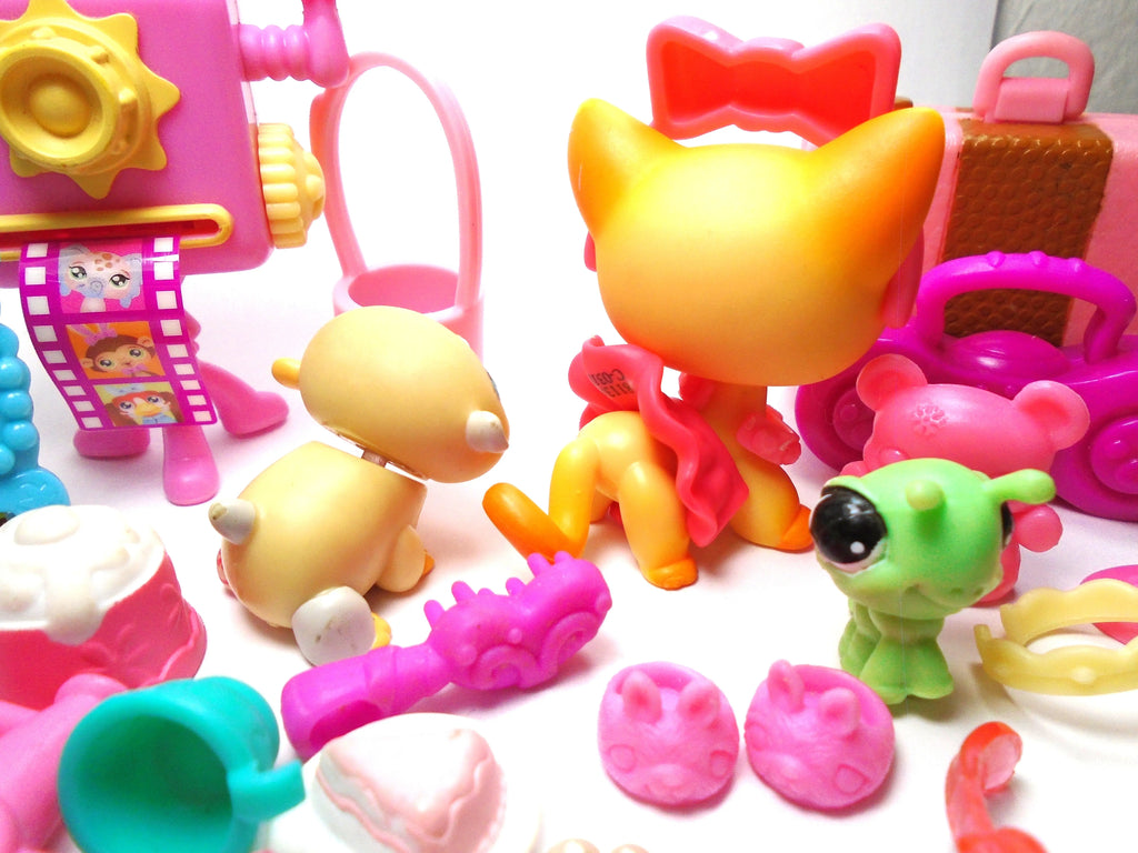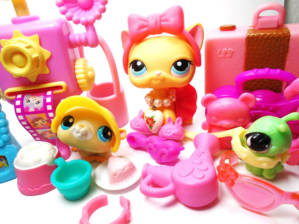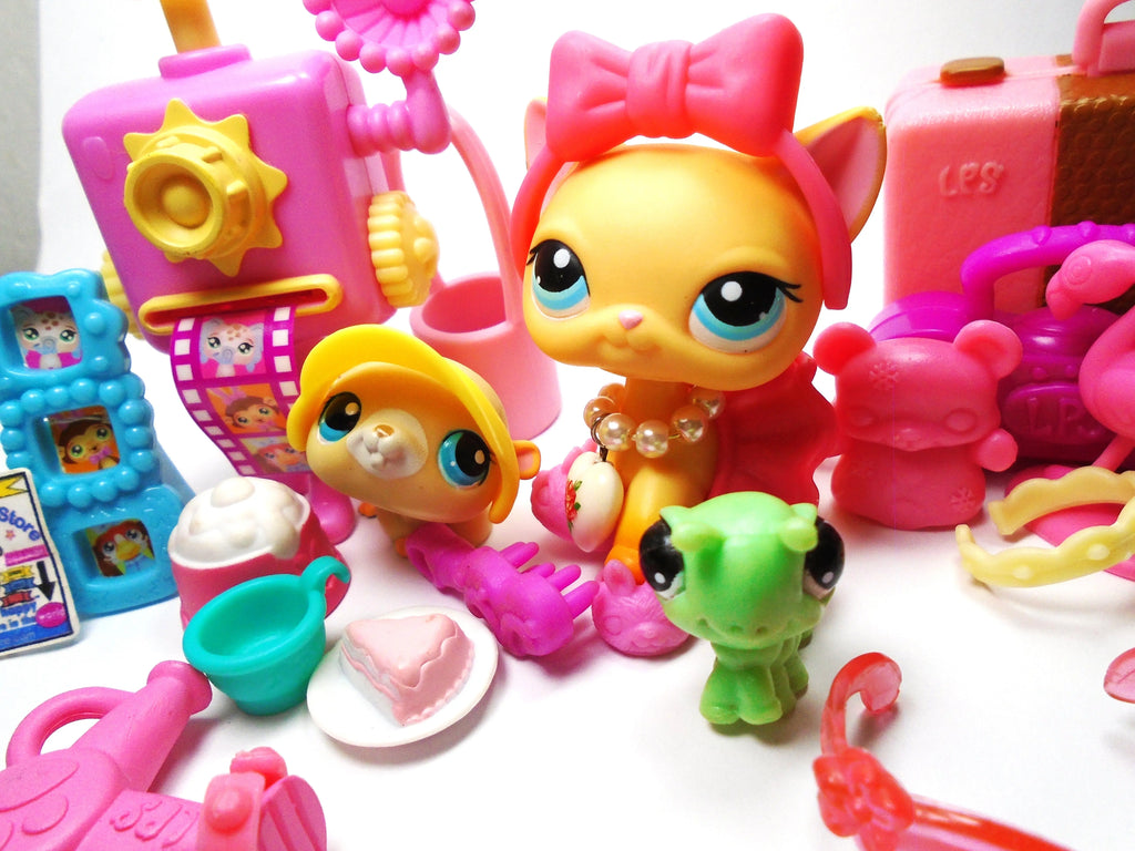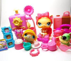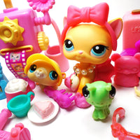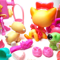 Littlest Pet Shop Short hair cat#339 "Brooke" with Caterpillar "Mimi", Gerbil and cute and original accessories