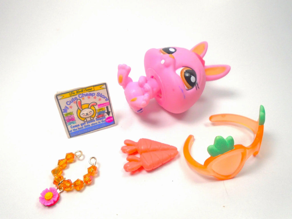 Littlest Pet Shop Pink Dwarf Bunny Rabbit #1770 with cute accessories Authentic