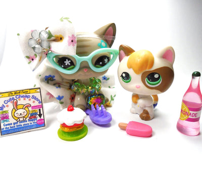 My Cute Cheap Store Littlest Pet Shop Rare Short Hair Cat #1206 and kitten #1301 with cute accessories