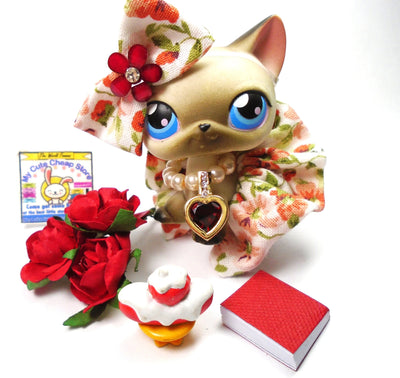 My Cute Cheap Store Littlest Pet Shop Siamese cat #5 with a white mouse and cute accessories Épuisé Vente