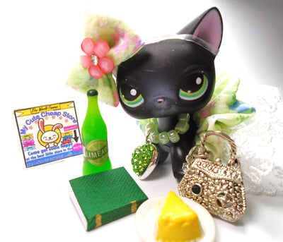 My Cute Cheap Store Littlest Pet Shop short hair cat #339 "Brooke " with Unique and Cute accessories a Cricket and a fairy Épuisé Vente