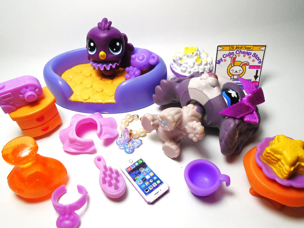 Littlest Pet Shop purple Cocker Spaniel #672 with cute accessories