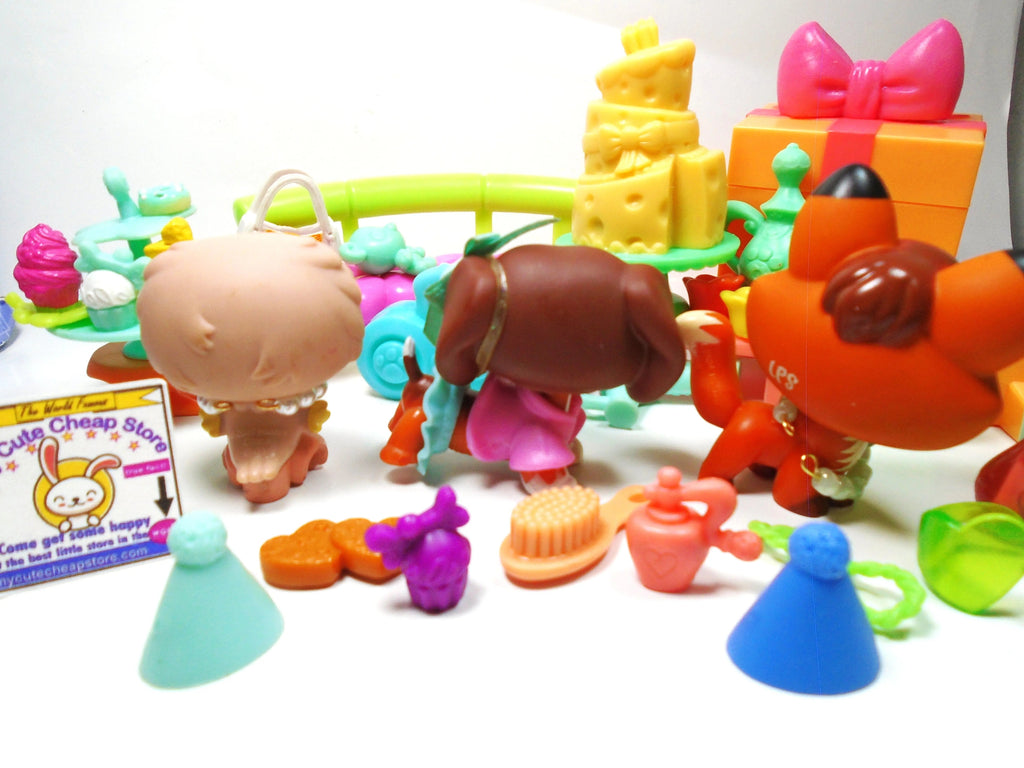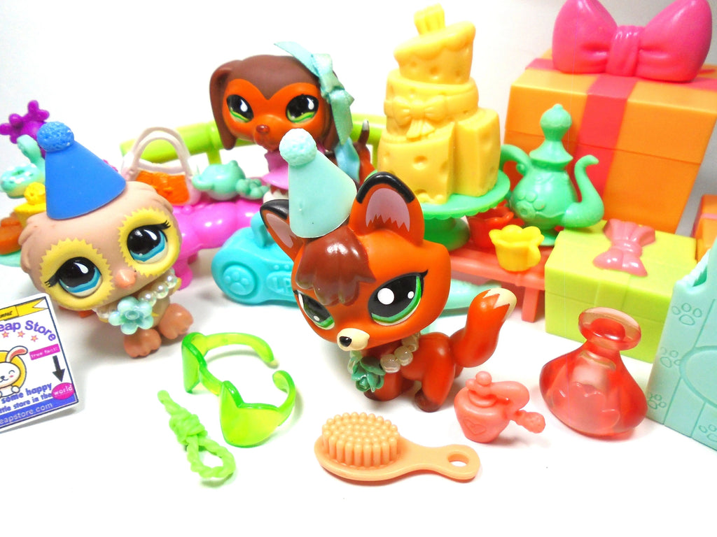 Littlest Pet Shop Dachshund #675 "Savvy" Owl #674 and G7 Fox with unique and cute accessories