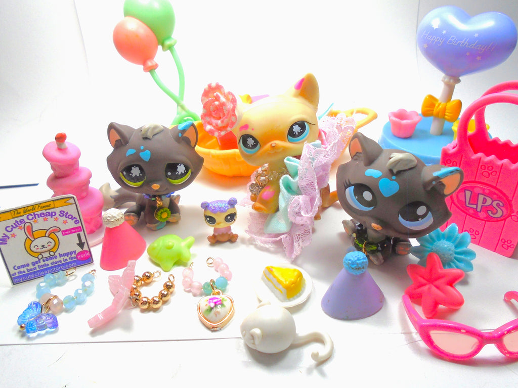 Littlest Pet Shop Messy Short Hair Cat #815 Tabby #816 and Variant w accessories