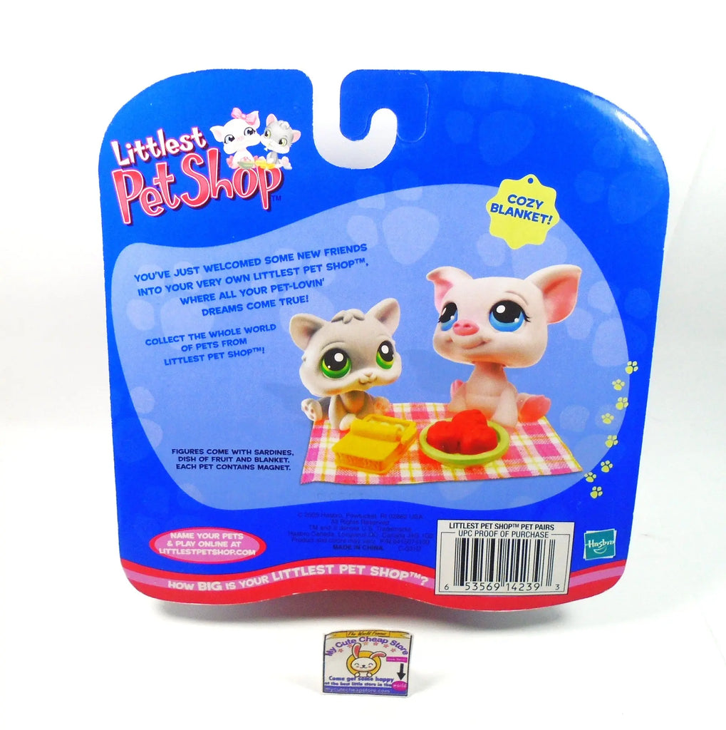 Littlest Pet Shop Grey Kitten #88 Pink Pig #87 Picnic Set NIB