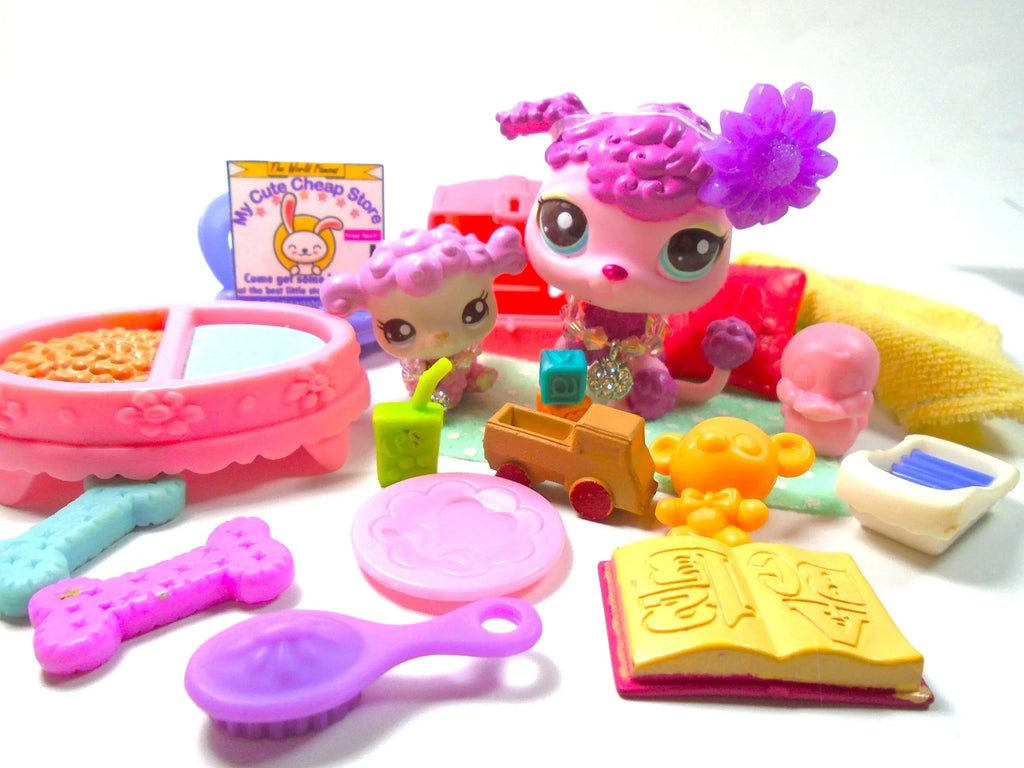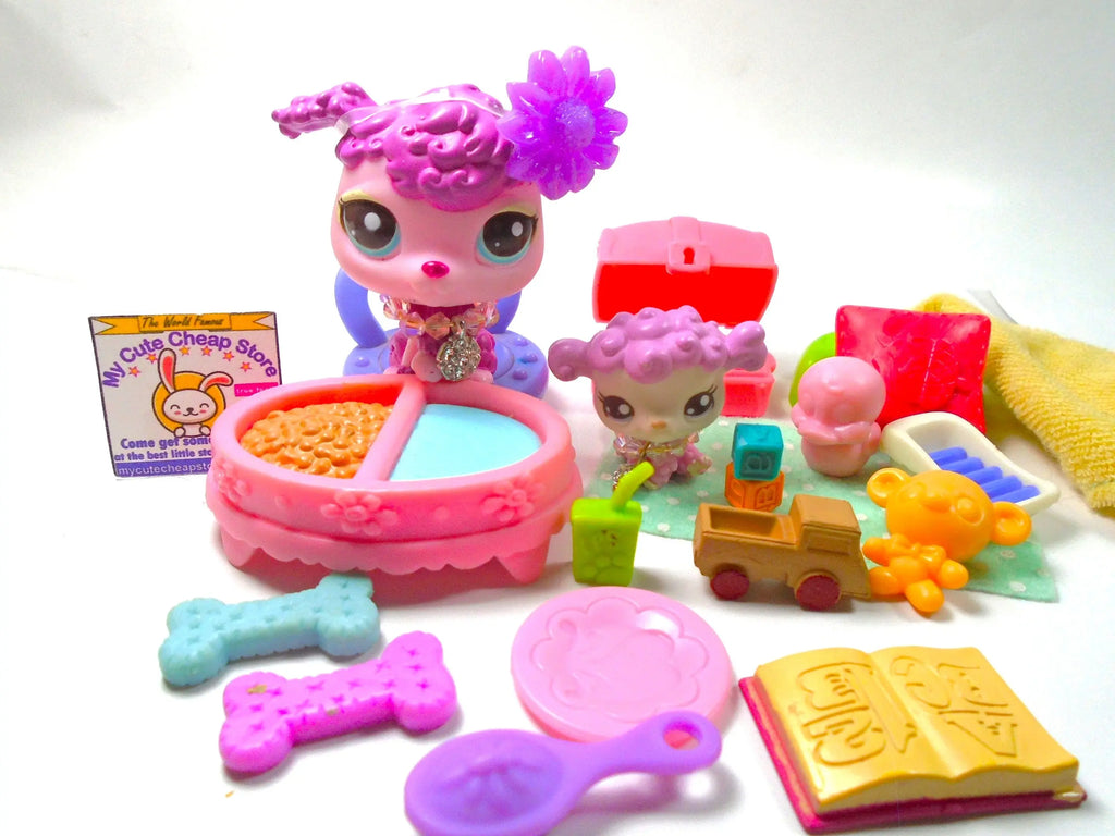Littlest Pet Shop Rare Mommy Baby Poodle #2497 #2498 with cute accessories authentic